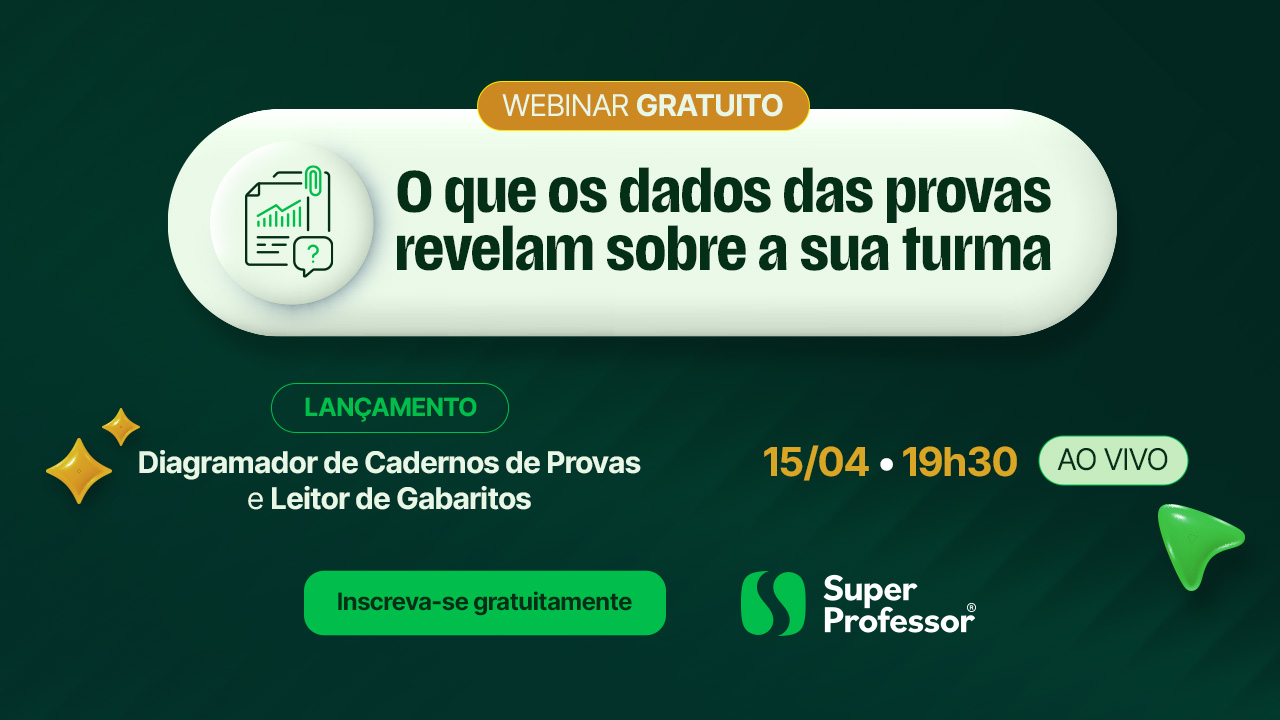 Esse será o tema do webinar gratuito do Super Professor, que acontece no dia 15 de abril de 2026, às 19h30, no YouTube. O encontro vai discutir como escolas, coordenação pedagógica e professores podem olhar para os resultados das avaliações com mais profundidade e transformar esse processo em leitura pedagógica mais clara.